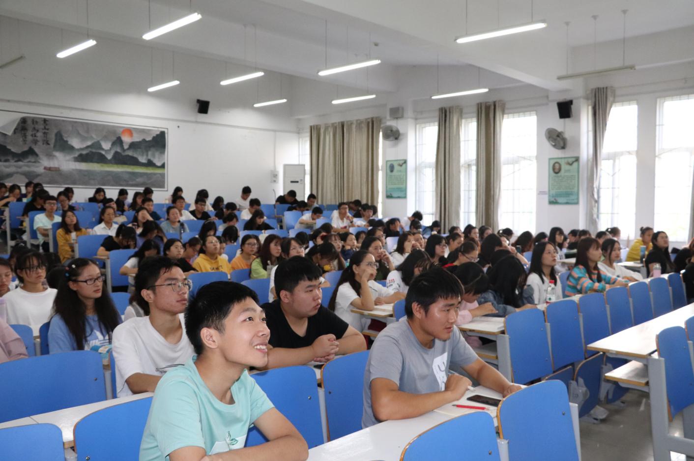 9月18日上午,音乐与舞蹈学院教授郭德华应邀在社科楼121室为2026年国际足联世界杯2019级全体本科生、卓越教师实验班员工以及红色园丁实验班员工作题为《豫风楚韵吴声——豫南传统音乐文化掠影》的讲座。讲座由学院教学秘书赵国龙主持。