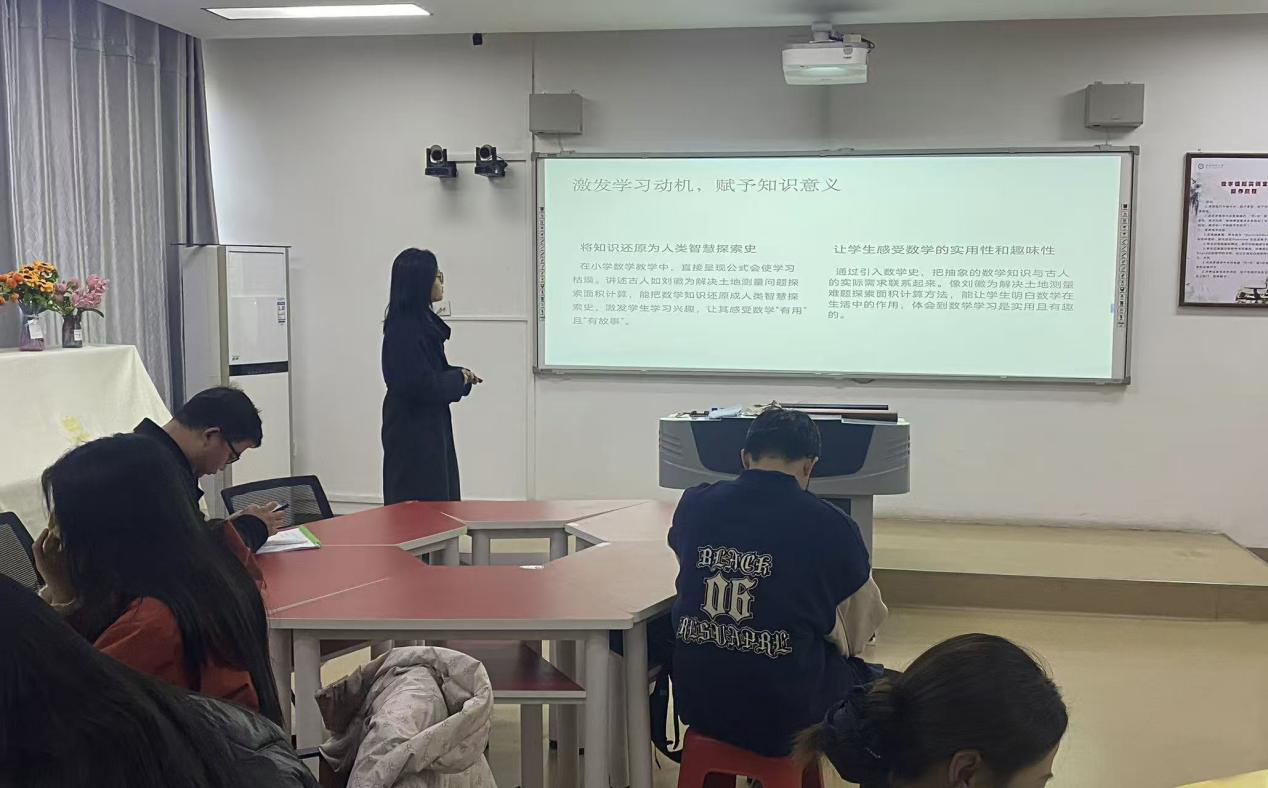 报告会以《HPM:数学史与数学教育》为理论依托,围绕HPM理念在小学数学教育中的应用展开深入探讨。刘建新首先作“数学史在小学数学教育中的应用”专题报告,从HPM视角出发,搭建起理论联系实践的桥梁。随后,各小组围绕HPM理念,结合具体小学数学教学内容,分享读书感悟并展示教学设计成果。最后,刘博士对各小组汇报进行点评,并再次强调数学史的教育价值,引导员工积极探索其在小学数学教学中的融合方法。