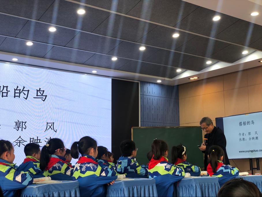 27日下午,同学们观摩了《盘古开天地》《猎人海力布》两节课程教学,程超群和王翠两位老师通过精彩的语言和生动有趣的讲解,把各自的教学特色展示得淋漓尽致。随后余映潮教授对两位老师的教学进行点评,余教授毕业于华中师范大学,是语文特级教师,他针对神话故事和民间故事两种体裁提出了别具创意的教学方式,既肯定了授课教师的闪光点,又指出课堂教学中存在的问题及改进意见,大家收获良多。