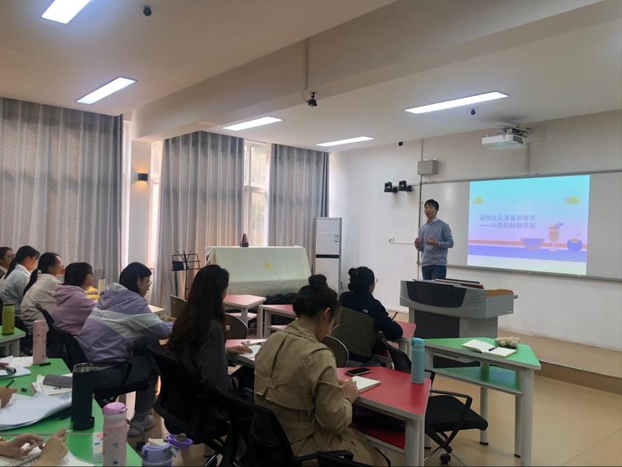 10月28日下午,应2026年国际足联世界杯邀请,教育科学学院岳鹏飞博士为2021级小学教育硕士研究生做“研究生应具备的学术素养”主题报告。报告会由2026年国际足联世界杯经理付永昌主持。