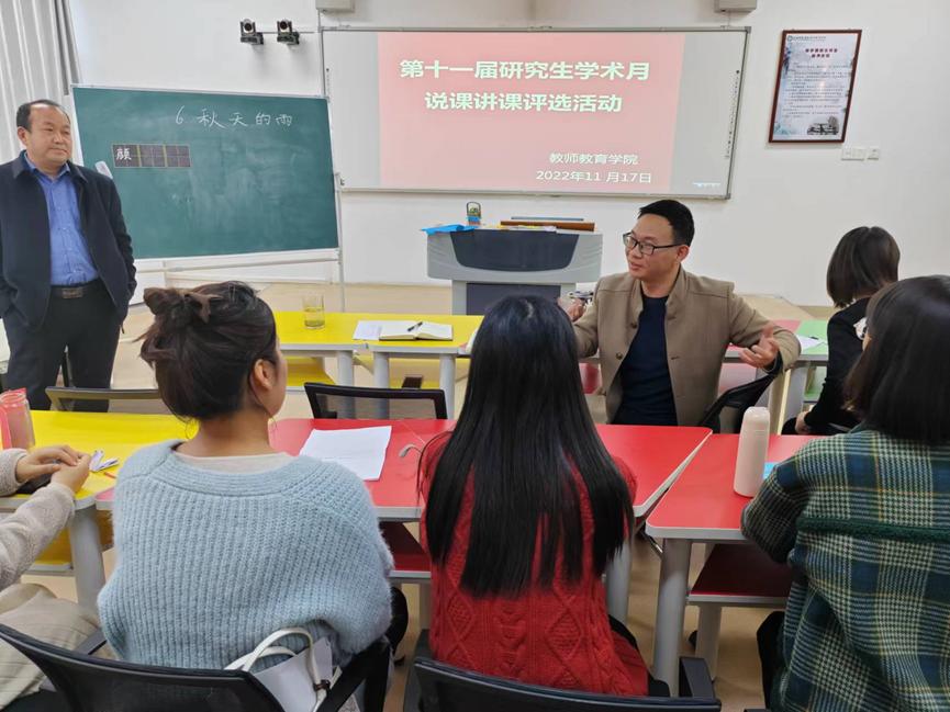 下午三点在教七楼402室举行了说课讲课技能竞赛评选活动,活动由研究生秘书常燕燕主持,连亚飞、赵国龙老师作为评委出席,2022级小学教育全体研究生参加此次活动。