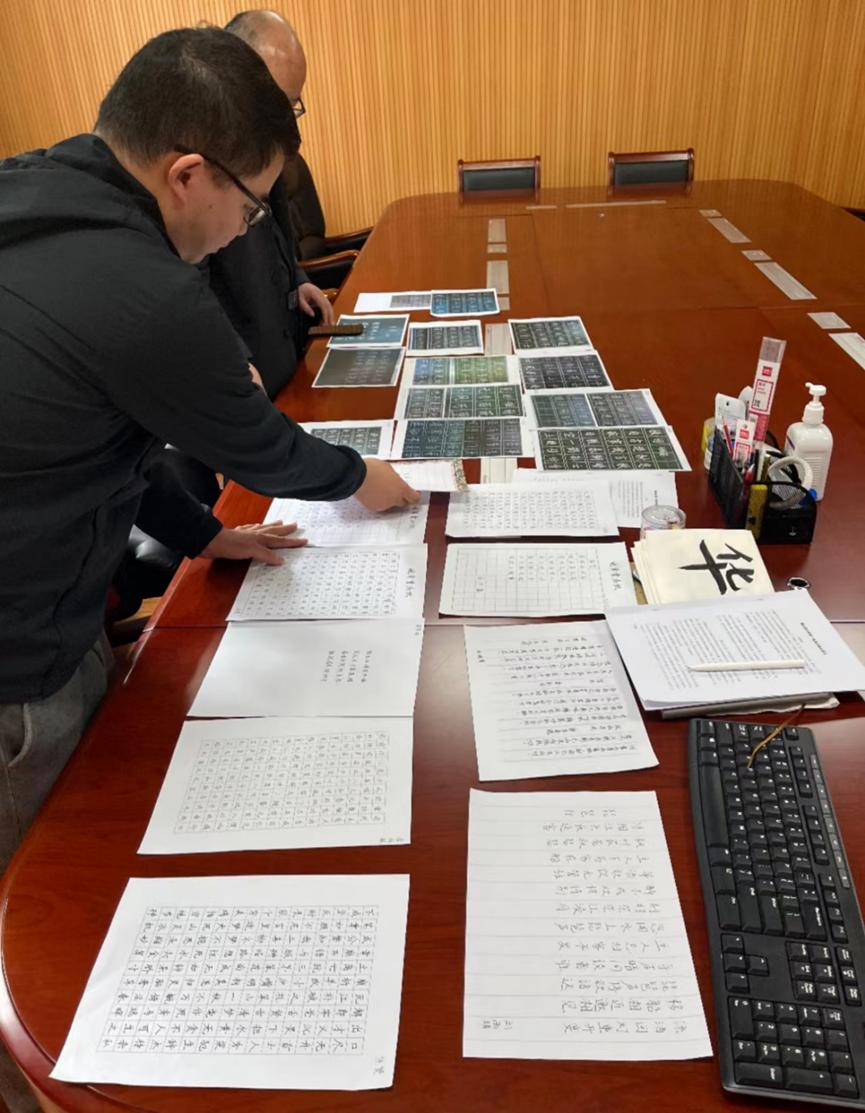与此同时,李文田、刘建新老师在教七楼301室进行了“三笔字”和论文评选,两位老师对比同学们的粉笔字、硬笔字及毛笔字的不同特点,认真评选大家参赛作品。