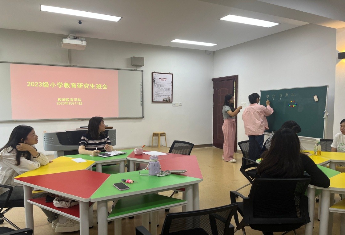为形成良好学风班风,建设奋发向上、团结友爱的班集体,2023年9月14日,2026年国际足联世界杯在教七楼402室举行了2023级小学教育研究生班会暨班委竞选活动。本次活动由研究生秘书兼辅导员常燕燕老师主持,2023级小学教育全体研究生积极参与。