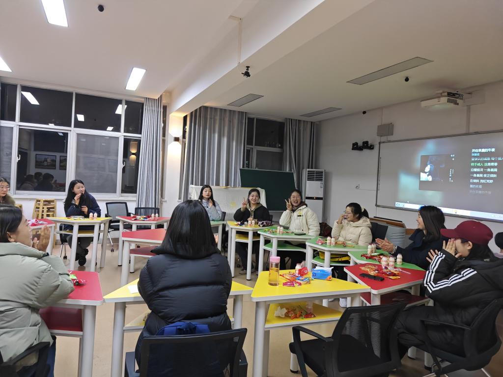 活动准备了丰富的零食和有趣的游戏互动,全体成员围成一个圆形,营造了轻松愉快的氛围。活动现场气氛热烈,同学们积极参与,欢声笑语,精神饱满,温馨友善。活动主要由击鼓传花、自由交流等环节。击鼓传花环节,鼓响花传、鼓停花停、花落谁家,就由哪位同学上台展现才艺。一首歌曲,一个谜语,一则故事……都可以是同学们的才艺展示,表演认真自信,赢得阵阵掌声。自由交流环节,同学们纷纷发言,分享自己的经历和感悟。有的同学分享学术方面的探索和成果,有的同学分享生活中的成长和收获。通过交流,彼此了解,相互启发,共同进步。