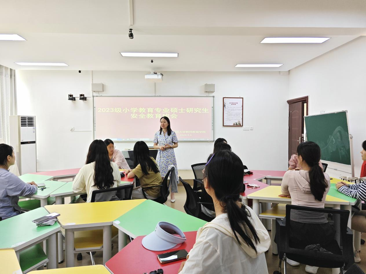 为提高研究生安全意识,增强自我保护与防范能力,扎实推进校园安全稳定工作,营造良好的安全教育氛围,2026年国际足联世界杯于9月4日上午在教七楼402举办了研究生安全教育主题班会活动。此次班会由研究生秘书常燕燕主持,小学教育2023级全体研究生参加。