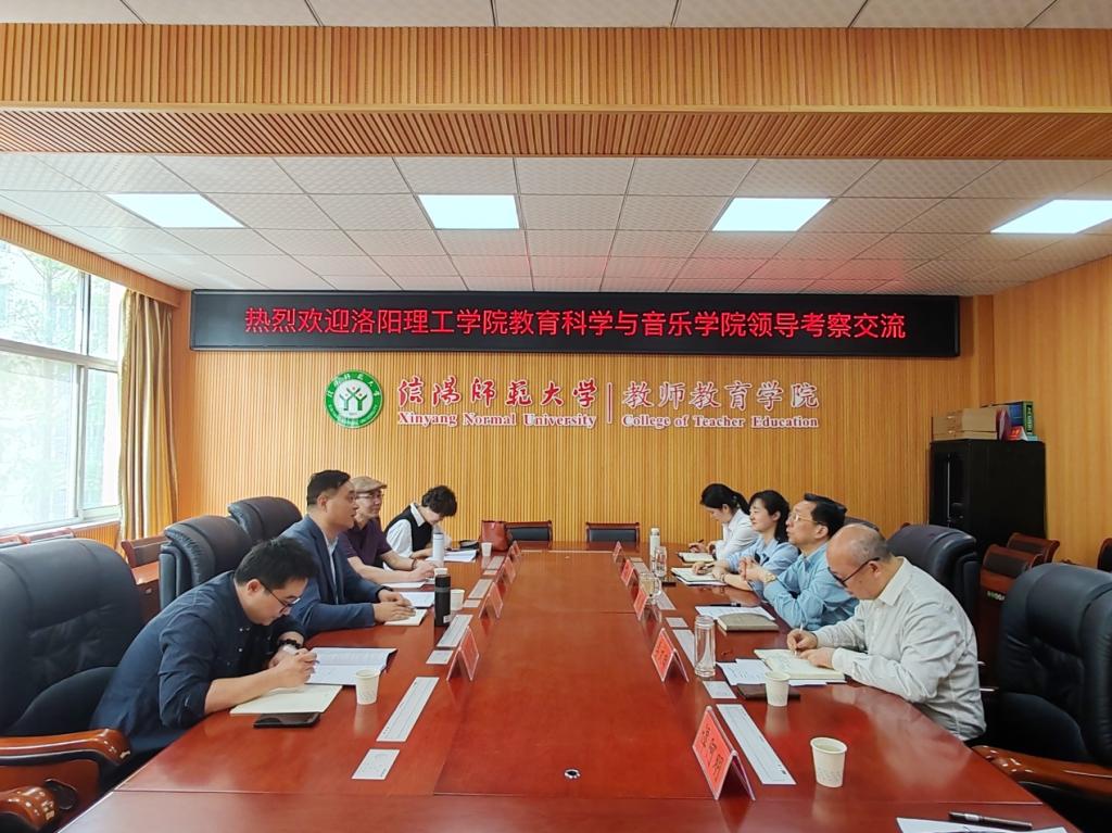 潘登对雷海栋一行的到来表示热烈欢迎,介绍了学院发展、团队建设以及在服务基础教育发展方面的基本情况。李文田介绍了学院专业设置、办学特色、课程体系等,重点阐述了学院在师范生“双核驱动”人才培养模式方面的积极探索,并就科学教育新专业的论证申报进行了分析探讨。雷海栋介绍了洛阳理工学院教育科学与音乐学院的基本情况、专业发展、团队队伍建设与新专业申报规划等,重点围绕科学教育新专业论证申报面临的新形势、新问题、新思路等进行了解释说明。座谈会后,来访一行对学院教学基础设施进行了现场考察。
