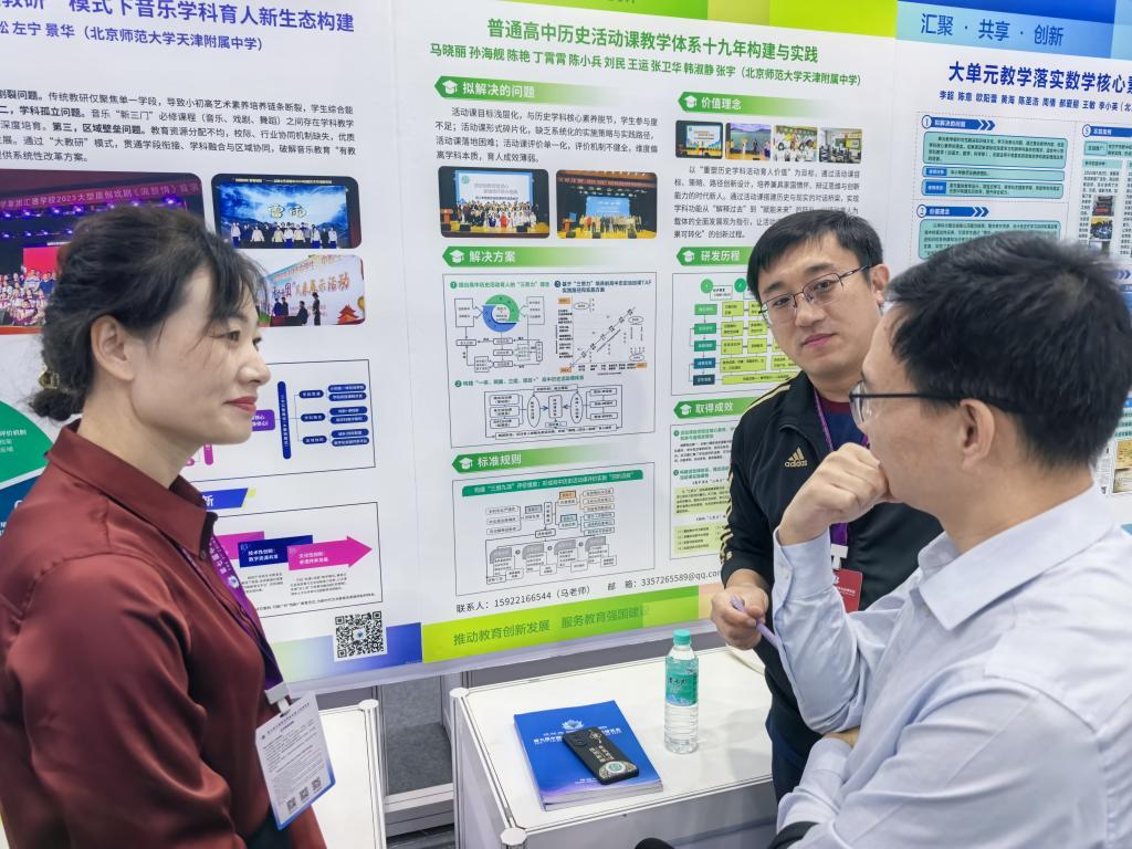 会议期间,赵国龙与来自全国各地的基础教育学校代表进行了深入交流,既主动分享自己在实践探索中形成的成果经验,也积极汲取各地先进的改革理念,为学院即将启动的课堂教学改革研究拓展思路。此次教博会之行,恰逢学院谋划将“三师课堂”教学模式纳入“十五五”发展规划的关键时期。“三师课堂”作为当前教育前沿的创新教学模式,其核心在于通过多位教育主体的协同配合,优化团队配置,突破传统课堂限制,构建高效个性的课堂生态,从而全面提升教学质量和人才培养水平。教博会的交流研讨为公司探索“三师课堂”改革提供了重要理论参考与实践借鉴。下一步学院将立足教师教育特色,借鉴国内外经验,系统谋划改革实施路径,稳步推进改革走向深入。