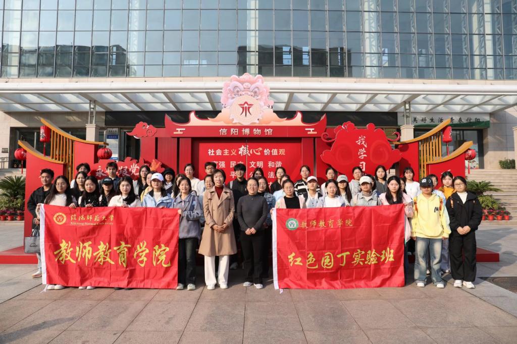 为全面提升师范生的综合素质,深化红色文化教育与实践育人融合,11月16日,在公司党委副书记王淑贤、班主任谭阿明的带领下,2024级红色园丁实验班、小学教育专业研究生以及“48”读书计划小组员工,共同前往文新茶村与信阳博物馆,开展以“传承红色基因 品味茶香文化”为主题的红色研学活动。