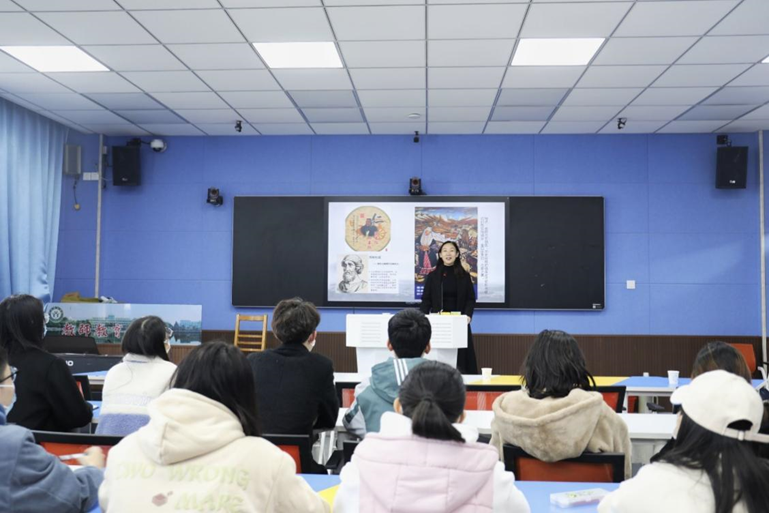 章彩云分别从文化意识的概念和内涵、文化意识的意义和价值、英语教学中文化意识的培养路径、中西文化的差异、让世界了解中国五个方面为实验班全体员工带来一场生动精彩的专题报告。首先,章彩云以英语课标大纲的基本理念为切入点,讲述了文化意识的概念和内涵,深刻解读了文化意识的意义,强调了文化意识对于英语教学以及中华优秀传统文化的重要价值。同时,她引用儒、道、佛的文化知识,教员工采用以物质、精神、制度以及民俗为内容的中华文化四分法进行文化理解。随后,章彩云将美术图画艺术与文化相结合,借助历史故事、文字建筑等形式,阐述了中华优秀传统文化在世界中举足轻重的地位,鼓励同学们尊重文化多样性,增强文化自信,树立文化自觉。最后,章彩云回归主题,强调了外语课程对于文化意识形成的独特性,向同学们提出了通过领悟多元文化,提高文化素养,养成良好的文化意识的建议。