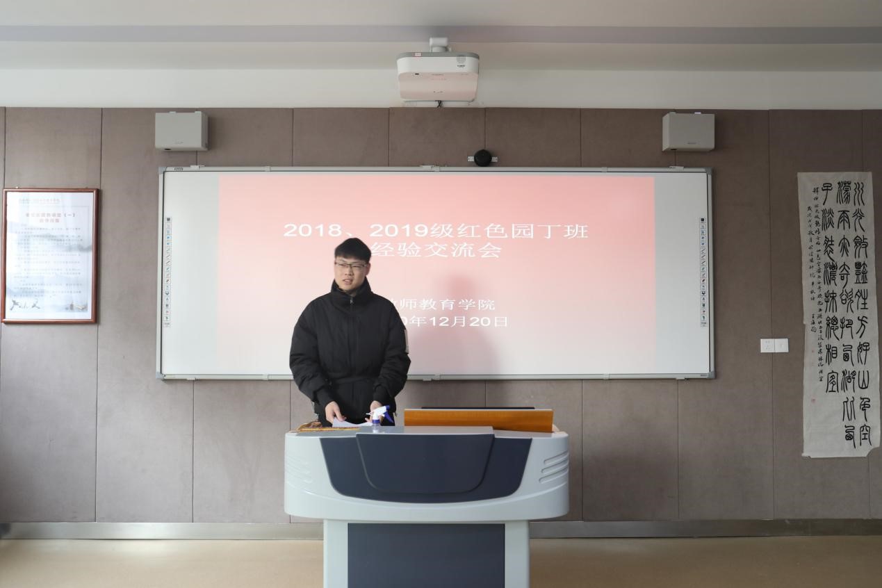 12月20日,2018、2019级红色园丁实验班经验交流会于教七楼201顺利举行。18级、19级红色园丁实验班全体成员及班主任谭阿明老师参与会议。会议由班长史铭明主持。