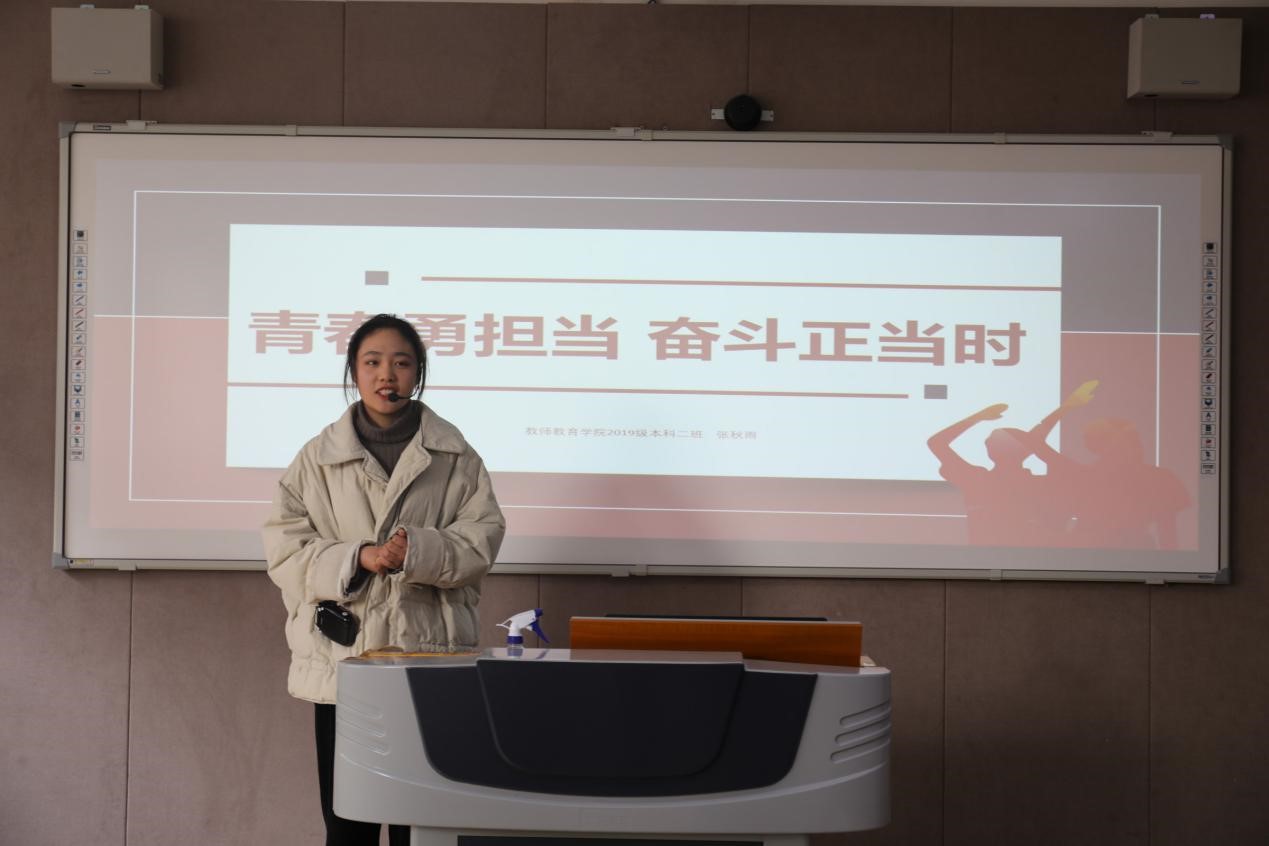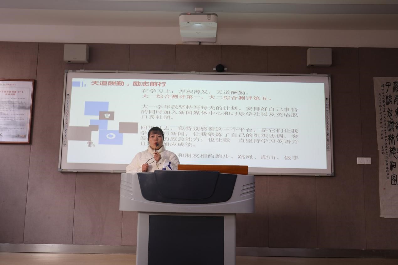 会上,员工代表结合自身的大学成长经历,围绕思想、学习、工作和生活四个方面向与会人员分享了自己的经验和心得体会。其中,18级夏爱梅以“益重青春志,奋斗当自强”为主题,讲述了自己在三年的老员工活中积极参与学校活动、投身公益扶贫、兼顾学习工作的奋进过程,鼓励大家面对困难要勇于克服,在青春年华中砥砺前行。18级陈开喜以自身为例,向与会人员分享了作为员工干部如何与老师沟通、如何与员工相处的经验技巧。他谈到,作为一名员工干部,要找准自身“服务者”的定位,树立责任意识,提高服务能力,同时要协调好学习与工作的关系,做到以学为本、踏实工作。19级张秋雨则从讲述自己参与的各类公益活动出发,向与会人员展现了作为一名老员工热心公益、工作严谨的优秀品格和积极向上的精神风貌。最后,一段承载了难忘回忆的视频向与会人员展现了18级红色园丁实验班成员入班以来日渐成长的历程,会议在这段纪念视频中圆满结束。