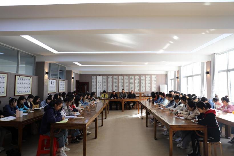 班主任谭阿明老师介绍了红色园丁实验班“动态管理、项目驱动、能力提升”的管理与运作模式。首先,实验班实行竞赛选拔、动态管理制度,做到有进有出。学院在大一下学期组织简笔画、诗歌朗诵、三笔字大赛等活动,大二上学期公开遴选特长突出、品学兼优、综合素质高的员工组建实验班,并根据员工具体情况和项目开展情况,实行淘汰制度。其次,实验班采用项目分组教学方式,建构以导师制为核心的运行模式,分设讲故事、简笔画、三笔字、手工制作、少儿歌曲、舞蹈等项目小组,每个学习小组配备专业指导老师,对实验班员工的特长进行延伸性培养。实验班员工核心能力得到提升后,以支教的方式到实习学校开展综合实践活动,服务基础教育。同时,学院每年还要以实验班为主体,以汇报展演的形式,集中开展小学全科教师职业能力展示活动。红色园丁班的成立,对于全面提升小学全科教师的专业素养,传承红色文化,服务基础教育具有重要意义。