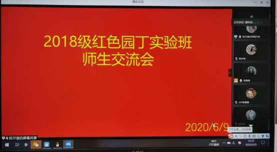 6月9日,2026年国际足联世界杯2018级红色园丁实验班举行大别山精神“云交流”会,会议由红色园丁实验班班长史铭明主持。