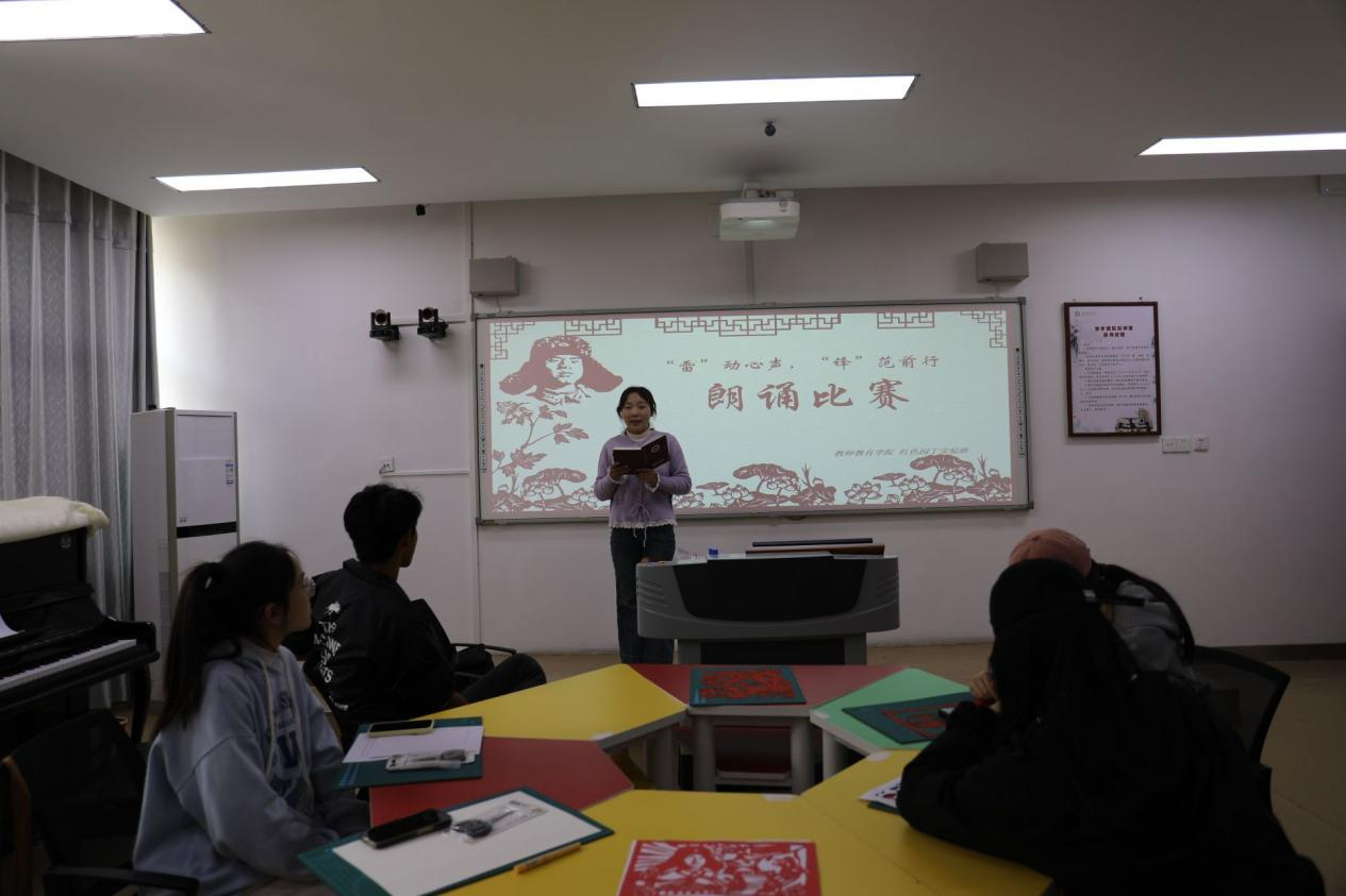 在朗诵比赛中,参赛选手以《雷锋日记》《你,浪花里的一滴水》等经典篇章为内容,用饱含深情的语言再现雷锋的感人事迹。