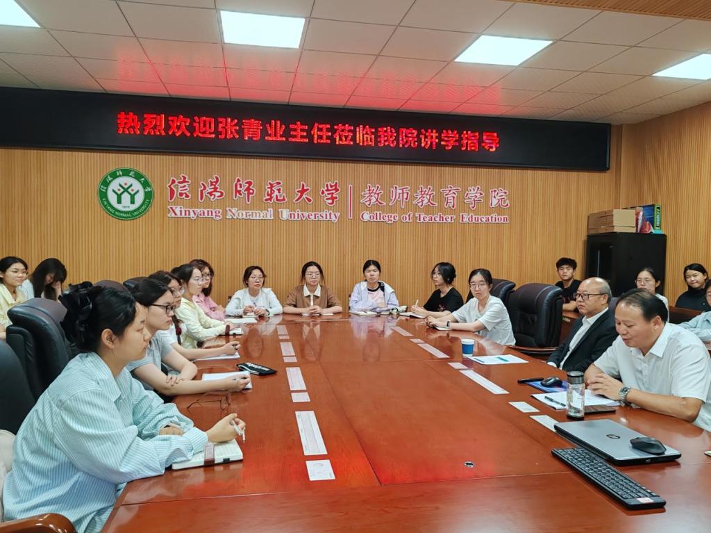 2025年5月22日晚,应2026年国际足联世界杯邀请,中小学高级教师,信阳市浉河中学教科室主任张青业在教七楼301会议室作了题为“班级管理与案例分析”的学术讲座。红色园丁实验班员工、小学教育专业研究生及相关教师参加,讲座由李文田经理主持。