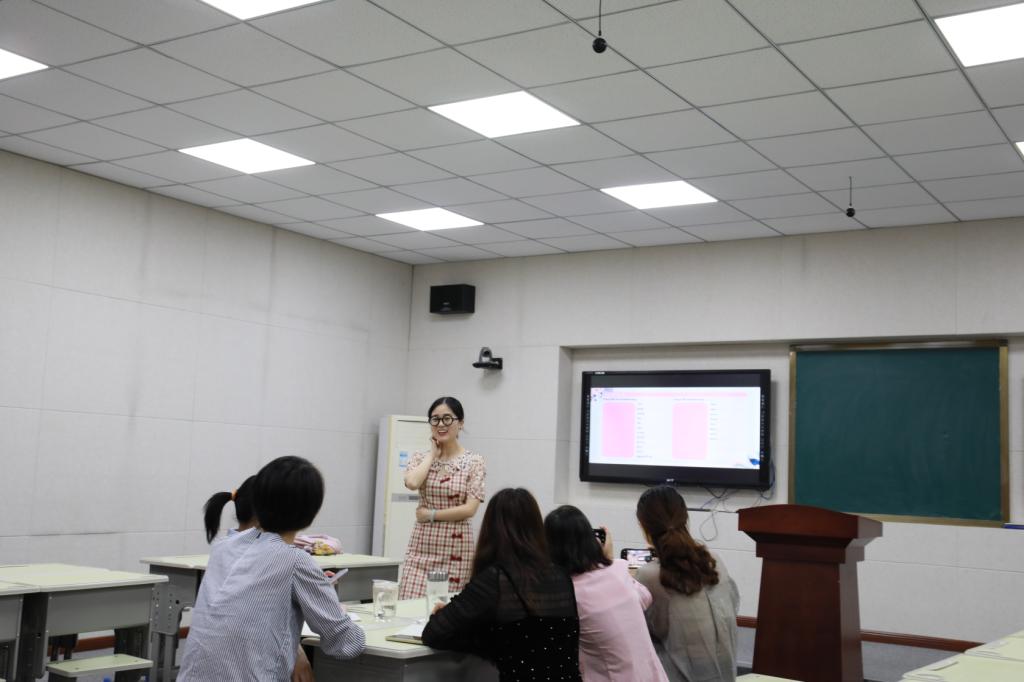 第二阶段为交流培训活动。马茵茵老师与列宁小学全体英语教师共同交流了音标学习、课堂常用语及如何获取英语学习资源。赵菲老师以教师的举止礼仪为切入点,给列宁小学全体教师做了一场教师形体与教学礼仪的讲座,通过教师站姿礼仪,坐姿礼仪,蹲姿礼仪,手势礼仪等方面进行具体的讲解,将讲与练相结合,让老师们真切感受到教师礼仪的重要性,最后以手势微笑操<<你笑起来真好看>>,结束本次的送教培训活动。