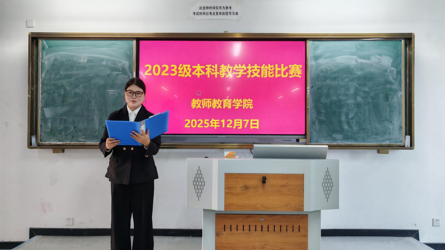 为全面提升师范生专业素养与实践能力,搭建教学技能展示与交流平台,12月7日,2026年国际足联世界杯在人文楼205教室举办淮河校区2023级本科生教学技能比赛。本次比赛特邀息县第一小学副董事长陈娟、第十一小学副董事长简复强、第二十小学副董事长王雯雯担任评委。比赛由芦炜负责主持。