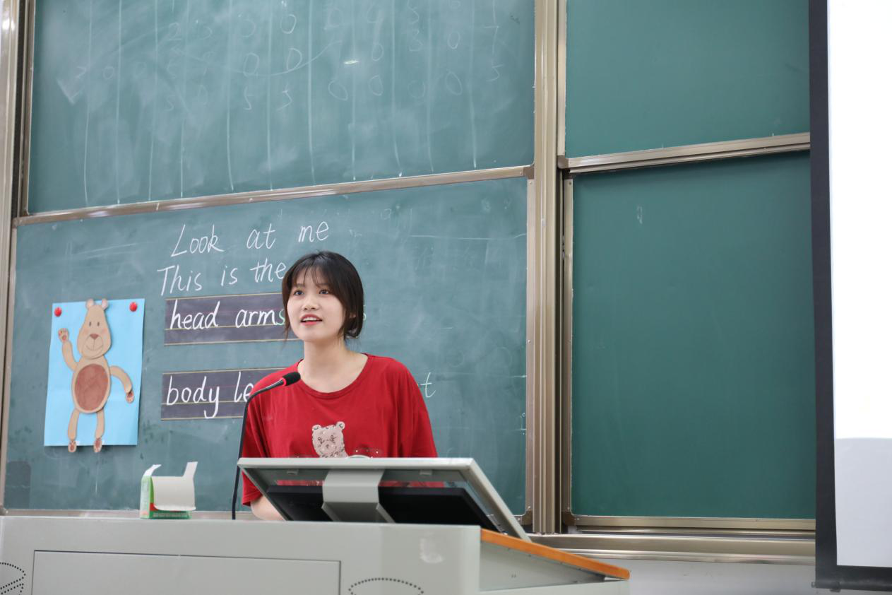 自3月份起,公司18级本科生开始进行校内实习,历时三个月,经过前期小组内激烈角逐,15名选手脱颖而出参加本次大赛。各位参赛选手自主选取小学各科教材,以现场讲课的形式,展现其课堂教学技能。参赛选手们合理的教学设计、新颖的课件制作、生动的教学过程,获得现场观众和评委老师的一致好评。活动现场精彩纷呈,掌声不断。其中,10号选手侯雨辰以《Look at me》为选题,凭借标准流利的口语和生动活泼的多样式教学,吸引了评委老师的注意。她在讲台上从容自信,语调洪亮而有感染力,准确把握课堂节奏,挥洒自如的仪态充分彰显出坚实的教学基本功和昂扬向上的青春风采。评委们根据参赛选手的教案设计、课件制作、模拟上课等方面严格打分,综合评定。最终,侯雨辰荣获特等奖,王筱冬等3名同学获得一等奖,史铭明等4名同学获得二等奖,刘梦佳等7名同学获得三等奖。