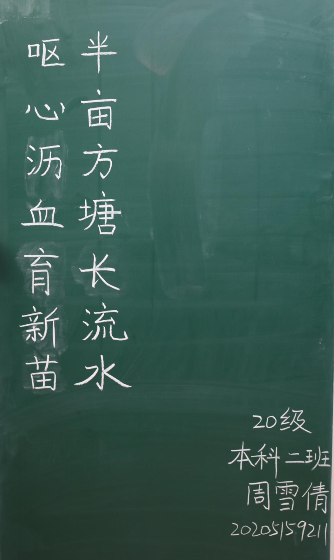 赛后,专业评委老师对参赛选手的粉笔字作品进行评选。最终,路晓、李子昂、王雯青、周雪倩、杨蕾思允荣获一等奖,胡扬扬等十名学子荣获二等奖,曹婧等十五名学子荣获三等奖。