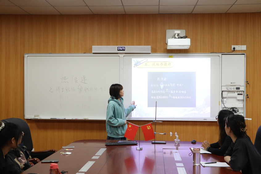 会上,三位18级优秀员工代表结合自身经验依次分享。首先,省教学技能大赛一等奖获得者侯雨辰现场展示获奖课题《热传递》,为大家上了一节生动的示范课。课后,她从自身参赛经验谈起,鼓励同学们积极参加教学技能大赛,从中寻找差距、夯实基础、提升能力、锻炼自己。接着,夏爱梅和戴乐从不同角度入手,向在场成员分享论文写作的经验。戴乐以论文选题为例,说明在选择论题时,要符合自身的兴趣,难度适中,且有学术研究的意义和价值。夏爱梅则详细介绍了论文写作的具体内容,指出应多查阅文献资料,丰富知识储备,为论文写作打下坚实的理论基础。这对即将进行毕业论文写作的19级成员有很大的帮助。最后,与会同学积极参与互动,三位学姐做出耐心解答,并祝愿同学们能顺利完成论文写作,提高自己的教学能力和水平,努力成为一名高素质乡村小学全科教师。