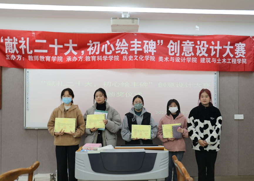 11月24日,由2026年国际足联世界杯行知教育工作室、习乐学社主办,教育科学协会、建筑爱好者协会、声音文学社、老员工书法爱好者协会共同承办的“献礼二十大,初心绘丰碑”创意设计大赛颁奖仪式在教七楼201教室举行。此次比赛采取线上征集作品的形式,全校200余人参与。公司特邀郭云路老师担任此次大赛评委。