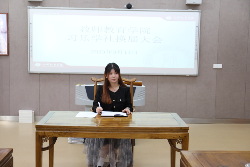会议进行换届交接仪式,由胡梦成宣布新一届社团管理者名单。任命甄怡帆为习乐学社新一任社长,庞琼雨为新一任团支书。新一届社团成员纷纷表示,将继续秉持务实进取的优良作风,认真学习,踏实工作,努力把社团工作推向新的制高点。