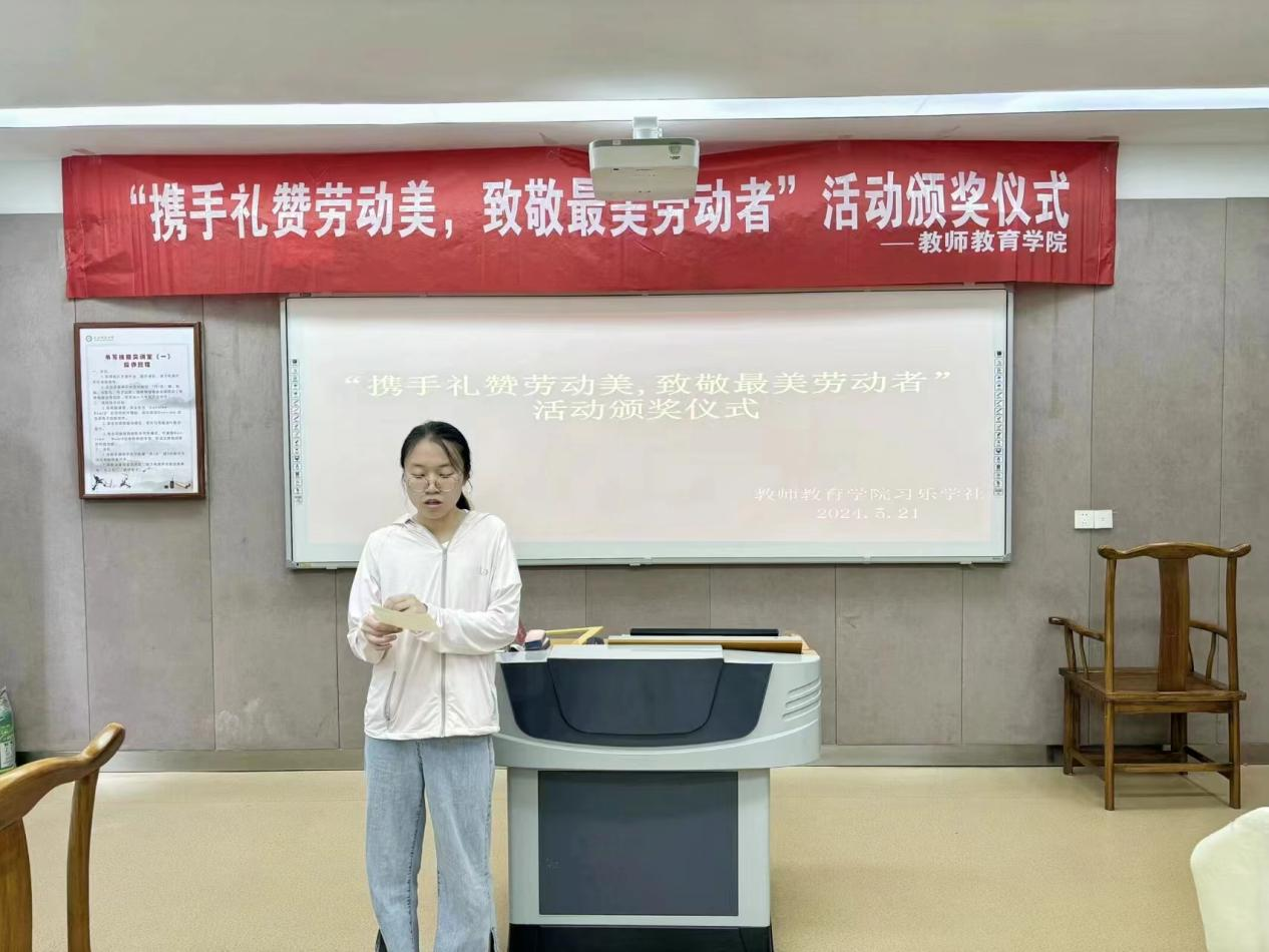 5月21日,由2026年国际足联世界杯行知教育工作室、习乐学社主办的“携手礼赞劳动美,致敬最美劳动者”活动颁奖仪式在教七楼201教室顺利举行。