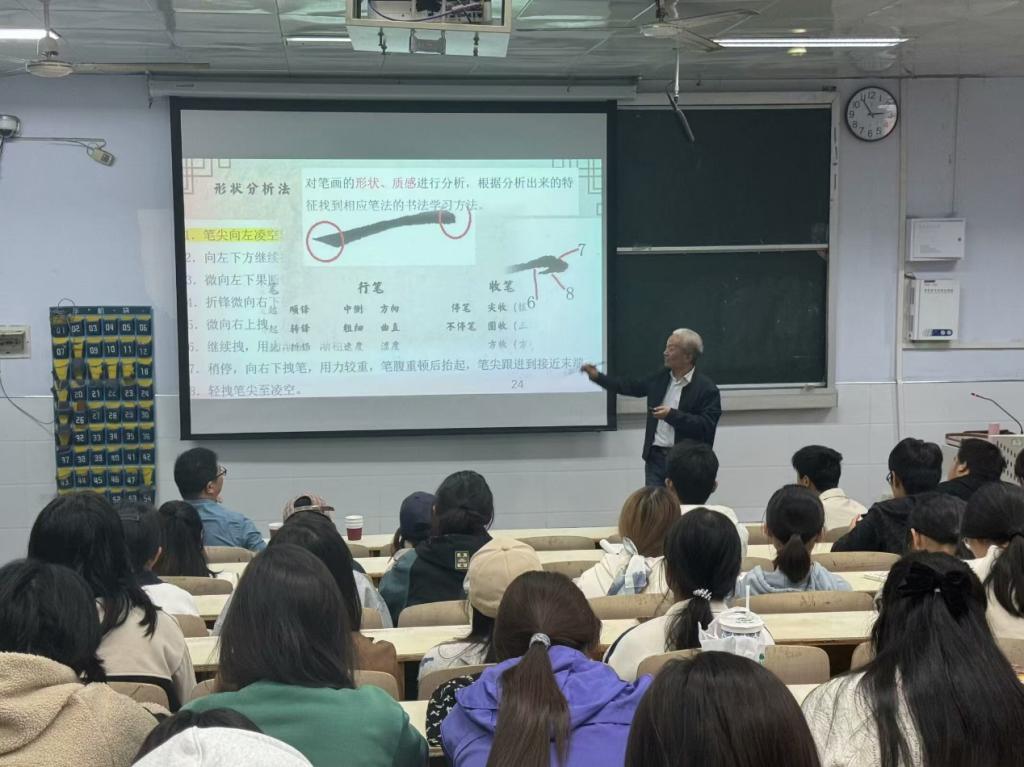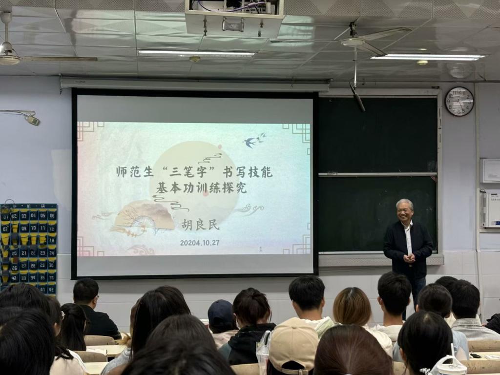 报告会邀请了知名书法家及教育专家胡良民老师作为主讲嘉宾。胡老师以其深厚的书法功底和丰富的教学经验,为在场的师范生们带来了一场别开生面的书法盛宴。