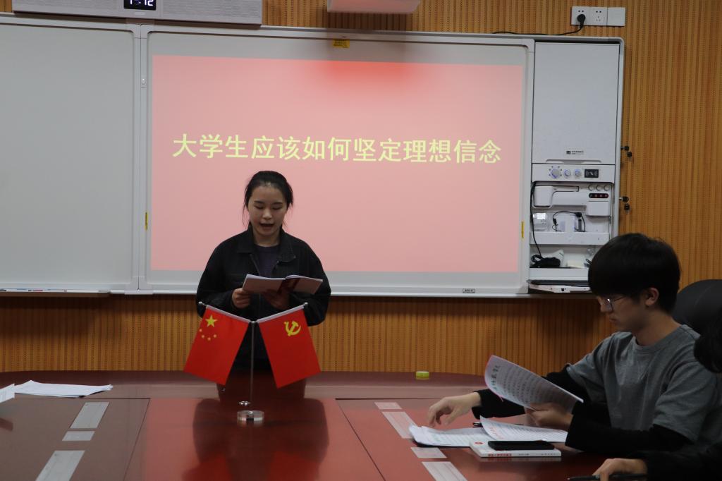 讨论会上,党员发展对象围绕“老员工如何坚定理想信念”、“老员工党员如何发挥先锋模范作用”两个问题,分小组深入开展学习讨论。在探讨“老员工如何坚定理想信念”的问题上,钱梦瑶表示,老员工坚定理想信念的关键在于“四重”,即重在科学理论的武装、重在高尚品德的涵养、重在艰苦环境的磨砺、重在批判方式的自省,同时,要牢固树立“四个意识”,坚定“四个自信”,拥护核心,紧跟核心,捍卫核心,使精神之钙更加充足。在研讨“老员工如何发挥先锋模范作用”的问题上,党员发展对象结合自身实际,各抒己见。陈妍谈到,老员工党员发挥先锋模范作用首先要从自身抓起,从小事做起,全心全意为同学服务,敢于批评与自我批评,并在学习中不断完善自我,发扬榜样精神,起到带头作用。经过激烈讨论,大家一致认为,作为党员发展对象,要加强政治理论学习,提升政治素养,打扫思想灰尘,不断夯实理想信念的根基,做好新时代中国特色社会主义建设者和接班人。
