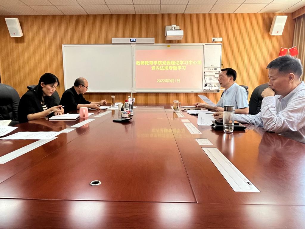 会上,潘登领学了《中国共产党章程》、《关于新形势下党内政治生活的若干准则》、《中国共产党普通高等学校基层工作条例》、《中国共产党支部工作条例(试行)》、《中共信阳师范学院委员会关于进一步严格党的组织生活的实施意见》等党内法规文件。