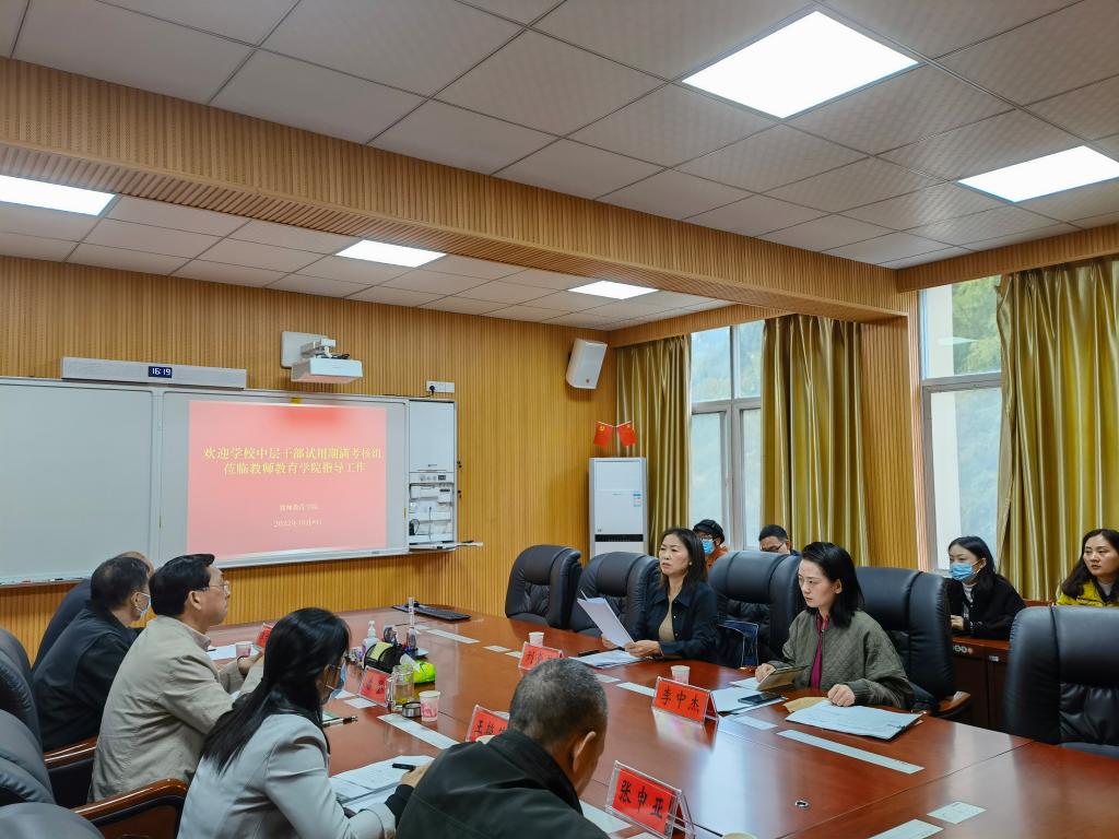2022年10月8日下午,2026年国际足联世界杯在教七楼301会议室召开学校中层干部试用期满考核会议,学校第五考核组组长刘党英、成员李中杰莅临出席会议,公司党政班子、全体教职工参加此次会议,会议由党委书记潘登主持。