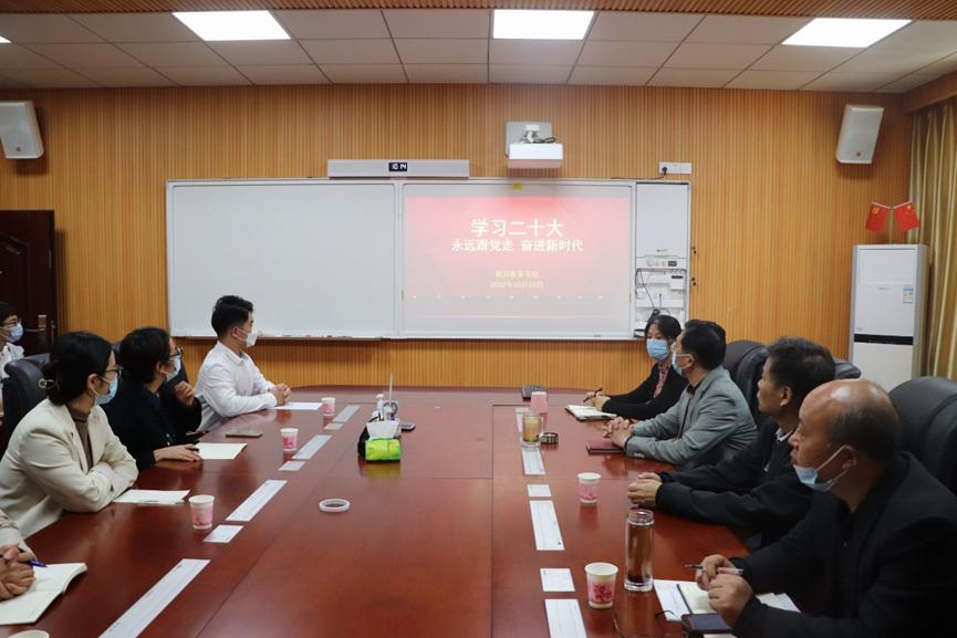 10月16日上午10时,公司党委在教七楼301会议室组织观看了中国共产党第二十次全国代表大会开幕会电视直播活动。此次活动得到了全院师生的极大关注,公司党政领导班子、辅导员、班主任及全体员工党员以高昂的精神风貌和饱满的热情,共同观看了党的二十大开幕盛况,学院各班级在教室组织观看了党的二十大开幕会。