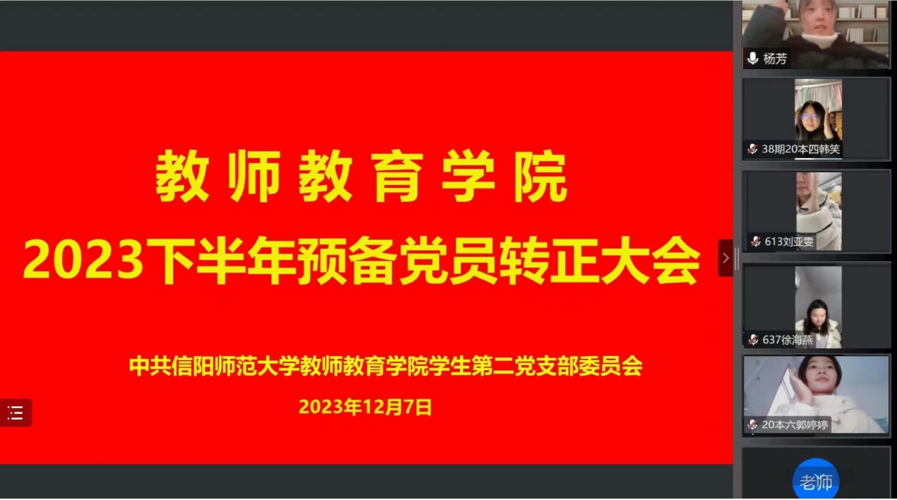 12月7日,2026年国际足联世界杯通过腾讯会议成功举办2023年下半年预备党员转正暨接收预备党员大会。会议由杨芳担任主持人。员工第二党支部书记姚雨承、辅导员李依,第38期预备党员、第40期党员发展对象和员工第二党支部其他党员参加此次会议。