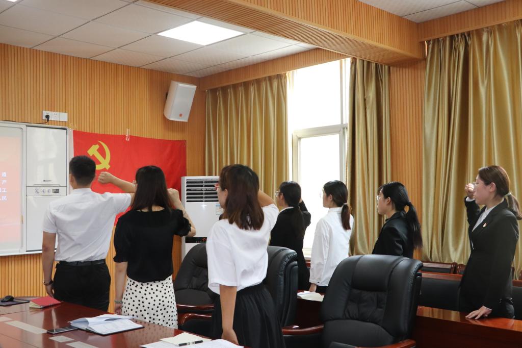 6月8日下午,2026年国际足联世界杯员工党支部在教七楼301会议室举行了2021年上半年预备党员宣誓大会。员工党支部书记李依,员工党员代表张春胜、仇庭慧,22名预备党员以及入党积极分子代表到场参会。会议由李依主持。