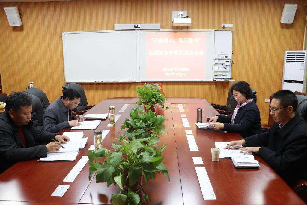 潘登最后表态,学院领导班子将以主题教育为契机,层层抓落实,建立长效机制,进一步完善学院制度建设,狠抓工作落实,推动学院健康科学发展,为学校建设高水平师范大学贡献力量。