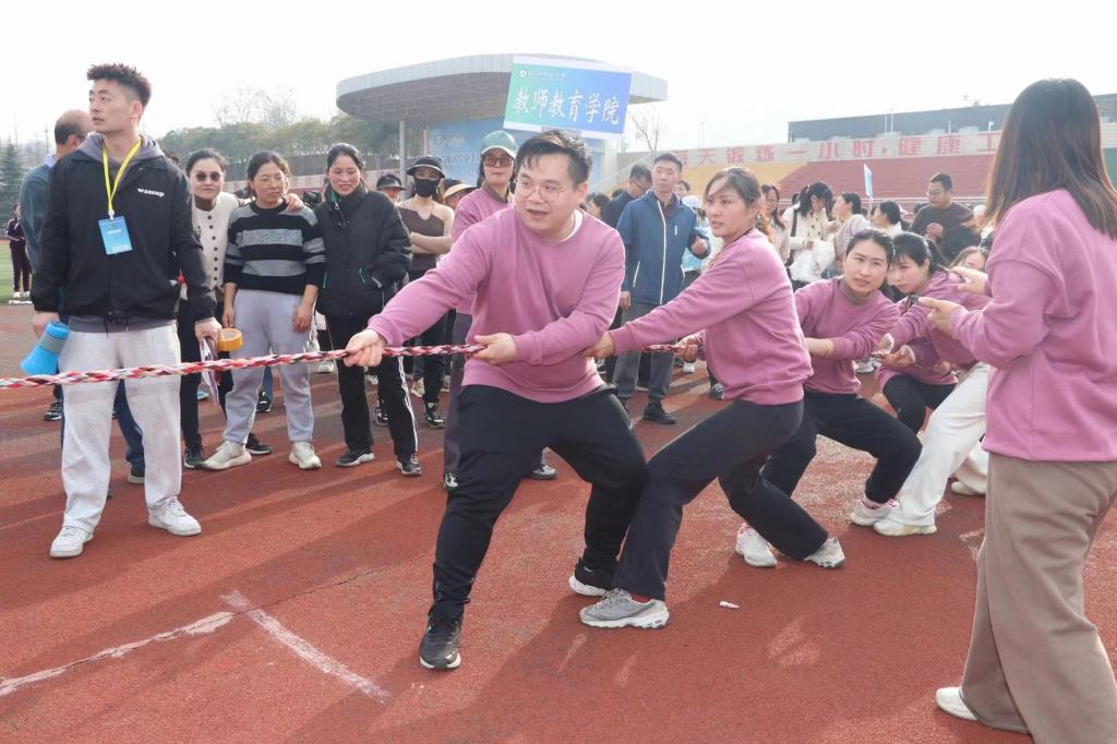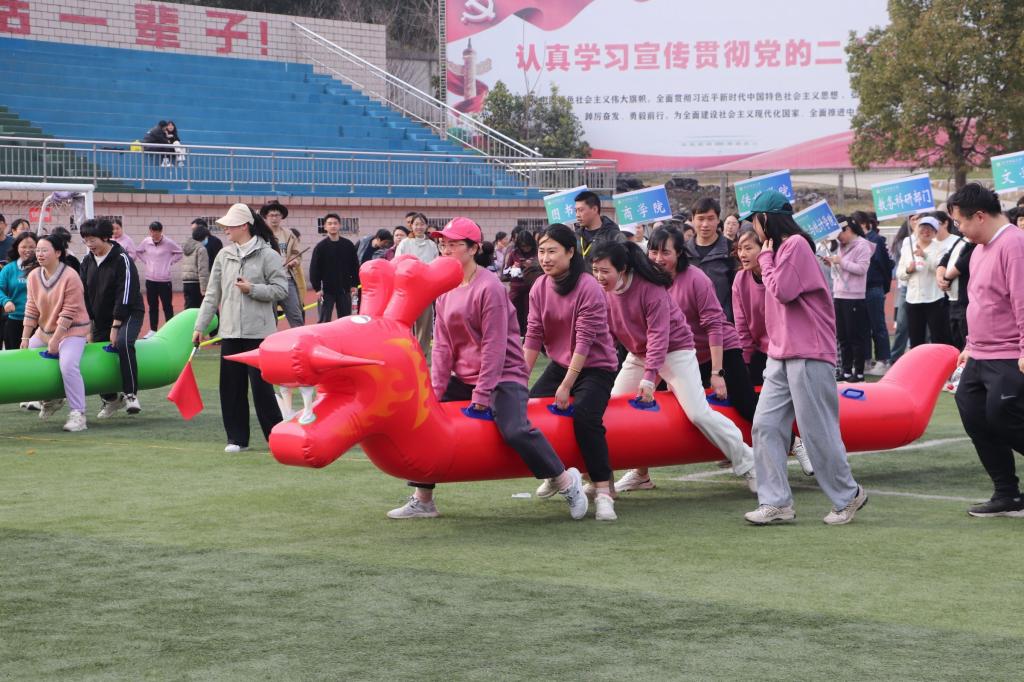 运动会上,公司党委书记王文鹏致开幕词,向全体女教职工致以节日的问候和美好的祝愿。公司党委副书记、工会主席岳宗德宣布本次趣味运动会开幕。在比赛正式开始前,参加比赛的教师在场地内跳起健身操,积极热身,为本次比赛做好充分准备。本次运动会设有拔河、袋鼠接力、旱地龙舟、旋风跑等团体项目,趣味性和协作性为一体,现场气氛既妙趣横生又紧张激烈。各支队伍积极参赛,充分发挥了团结协作、奋力拼搏的精神,尽显巾帼风采。在拔河比赛中,公司教师热情高涨,个个精神抖擞,随着裁判员一声令下,教师们个个双手紧握长绳,憋足气、鼓足劲,所有人的心凝聚在一条绳索上。赛场上欢呼声、喝彩声不绝于耳,洋溢着欢乐的气氛。公司教师队伍在本次趣味运动会上表现优异,在旱地龙舟、旋风跑两个项目中均进入八强,学院荣获优秀组织奖。