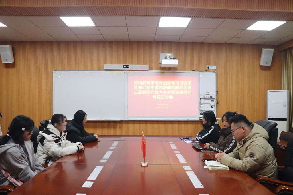 活动伊始,全体参会同学首先集中观看了习近平总书记重要贺信相关视频及志愿服务先进典型事迹纪录片。贺信中,习近平总书记大力弘扬志愿精神,积极投身中国式现代化建设生动实践的殷切嘱托,与青年老员工志愿者们在乡村教育、社区服务、社会治理等领域的奉献故事相互呼应,通过学习,同学们深刻认识到“志愿服务是社会文明进步的重要标志”的深刻内涵,真切体会到“传递真善美,传播正能量”的时代价值 。在研讨交流环节,学子们结合视频学习感悟与自身经历踊跃发言,大家谈到,视频里支教志愿者扎根山区、点亮孩子梦想的故事令人动容,作为未来的教育工作者,要把志愿精神融入专业学习,组建相关志愿服务队伍,为乡村教育振兴贡献力量。