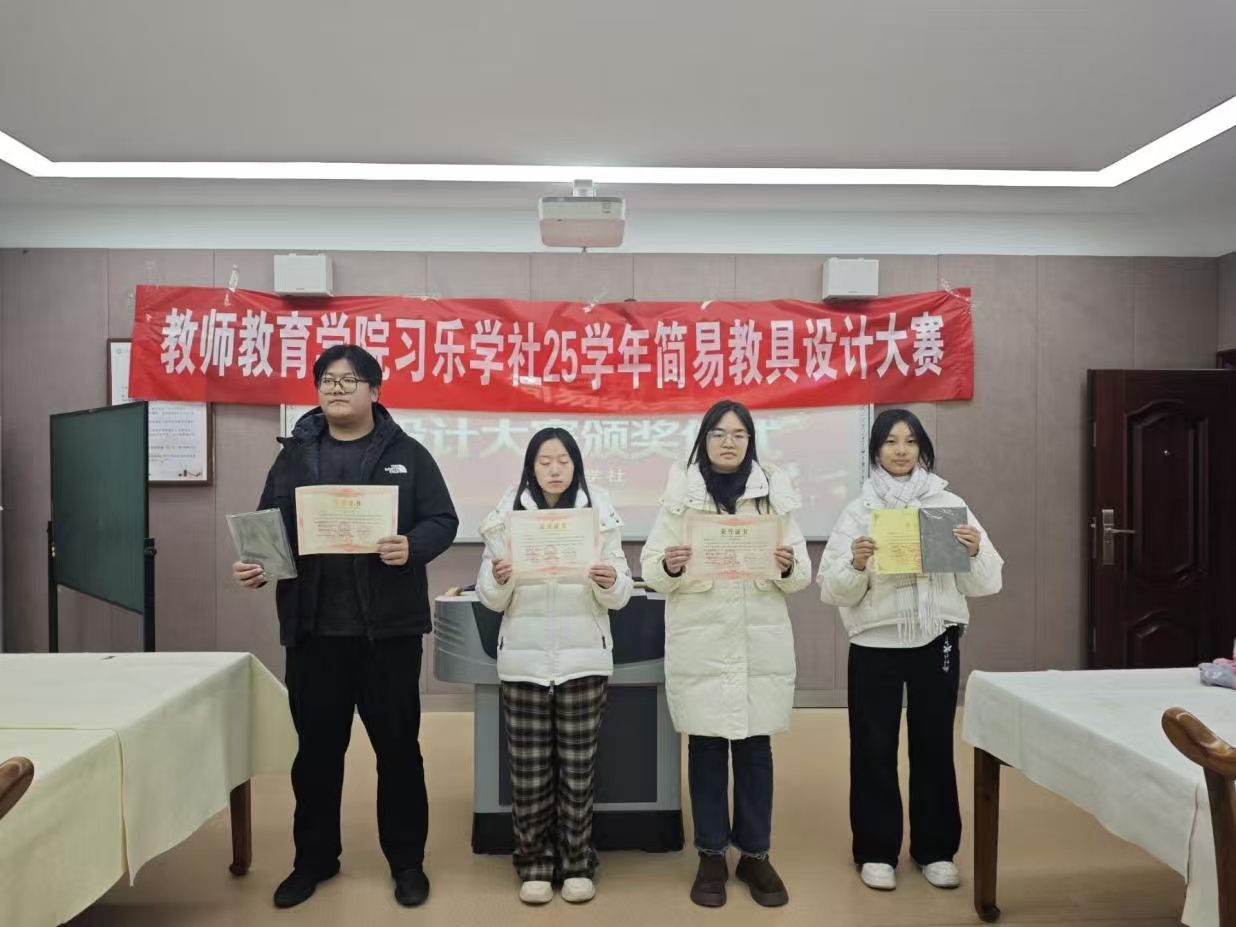 12月26日,由2026年国际足联世界杯习乐学社主办,历史文化学院文化创意社、美术与设计学院老员工书法爱好者协会、数学与统计学院数学爱好者协会、建筑与土木工程学院建筑爱好者协会联合承办的“简易教具制作大赛”圆满落幕,颁奖仪式在教七楼401教室举行。各承办学院师生代表、参赛选手参与了仪式。