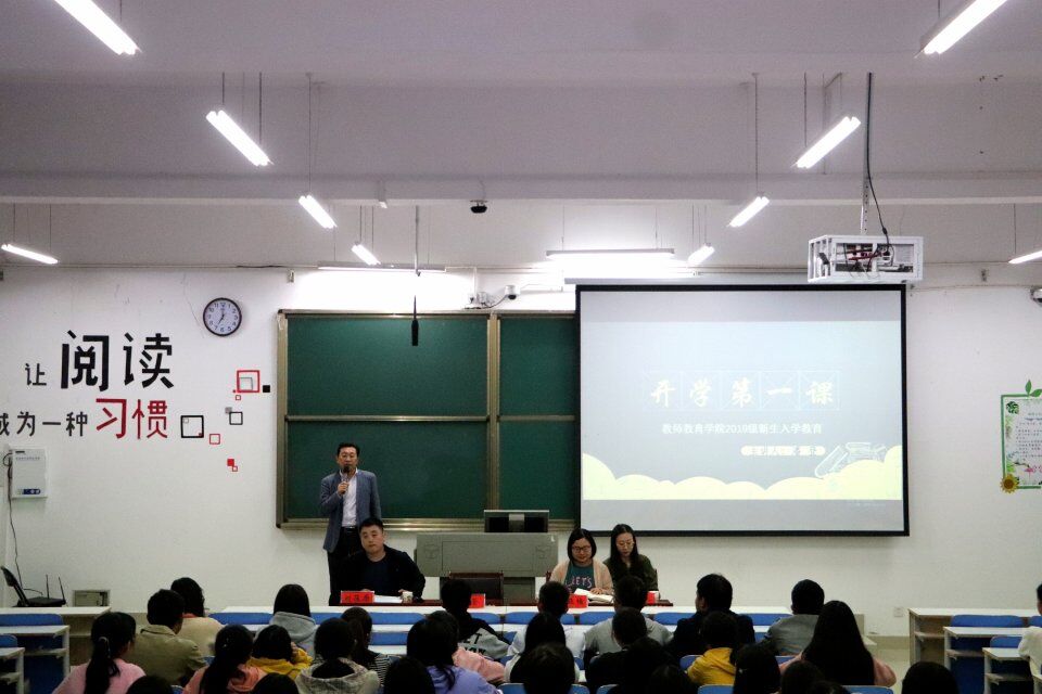 启动式结束后,潘登书记为2019级新生讲授入学教育第一课。潘书记从大学文化、学院本科生人才培养和课程安排、思想政治教育、心理健康教育、安全稳定工作、精神文明建设等方面进行了生动详实的讲解。