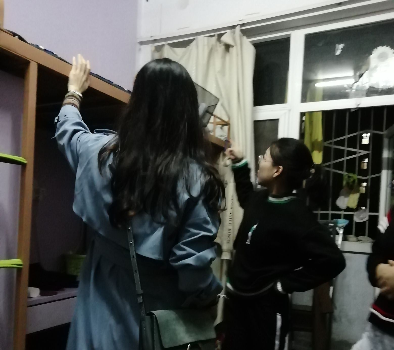 在走访过程中,三位老师与同学们进行亲切交流,了解员工的学习和生活情况,并对同学们提出的学习、生活和校园安全管理等各方面的问题进行解答;亲切叮嘱同学们要注意天气变化,及时添衣添被。同时,就宿舍晚归、外宿及使用违禁电器等问题对员工进行预防教育,希望同学们安全意识常存心中,将安全隐患从思想上杜绝。
