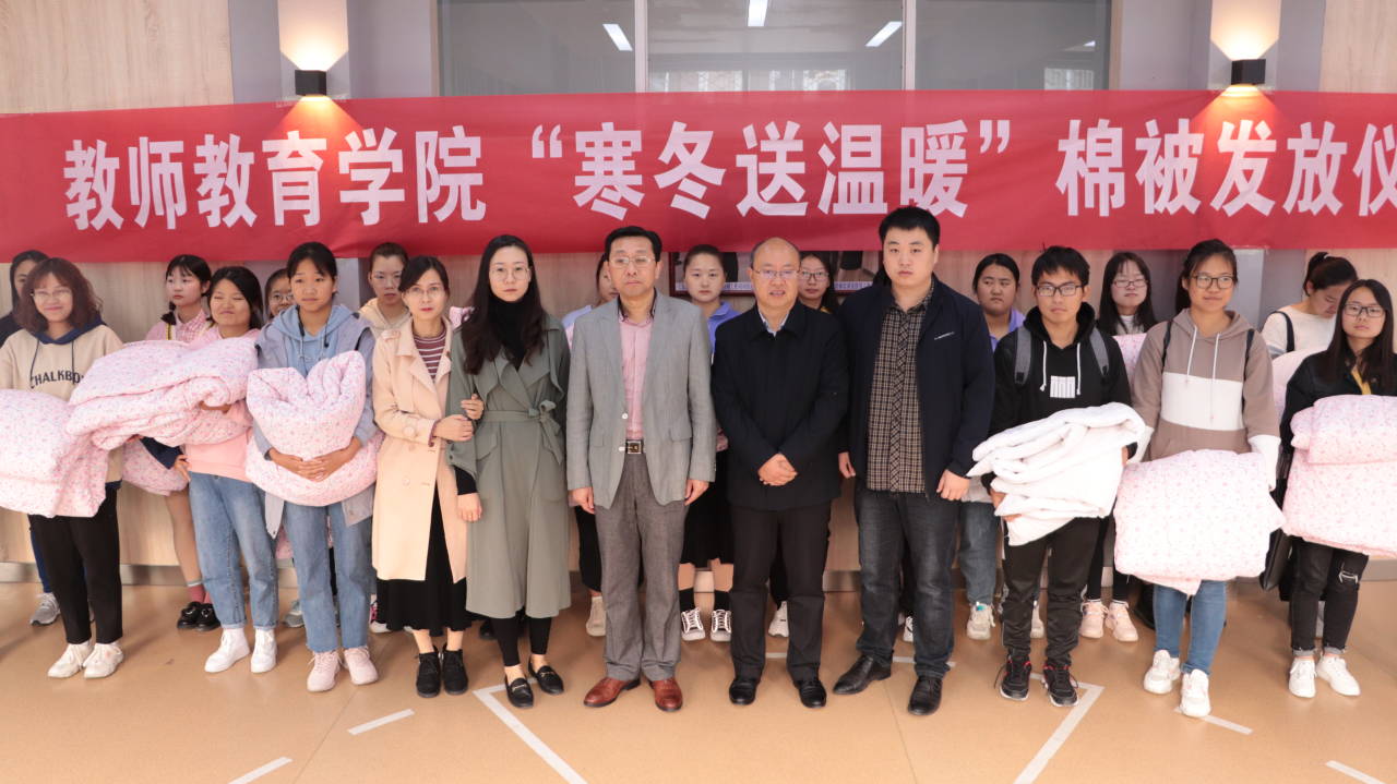 为进一步深入“不忘初心、牢记使命”主题教育,帮助学子温暖过冬,11月14日,公司“不忘初心、牢记使命”主题教育2019年“寒冬送温暖”系列活动在教七楼104教室举行。公司党委副书记潘登、党委委员李文田出席了仪式,辅导员李依、郑亚丽、刘莅原及25名受助员工代表参加了爱心棉被发放仪式。