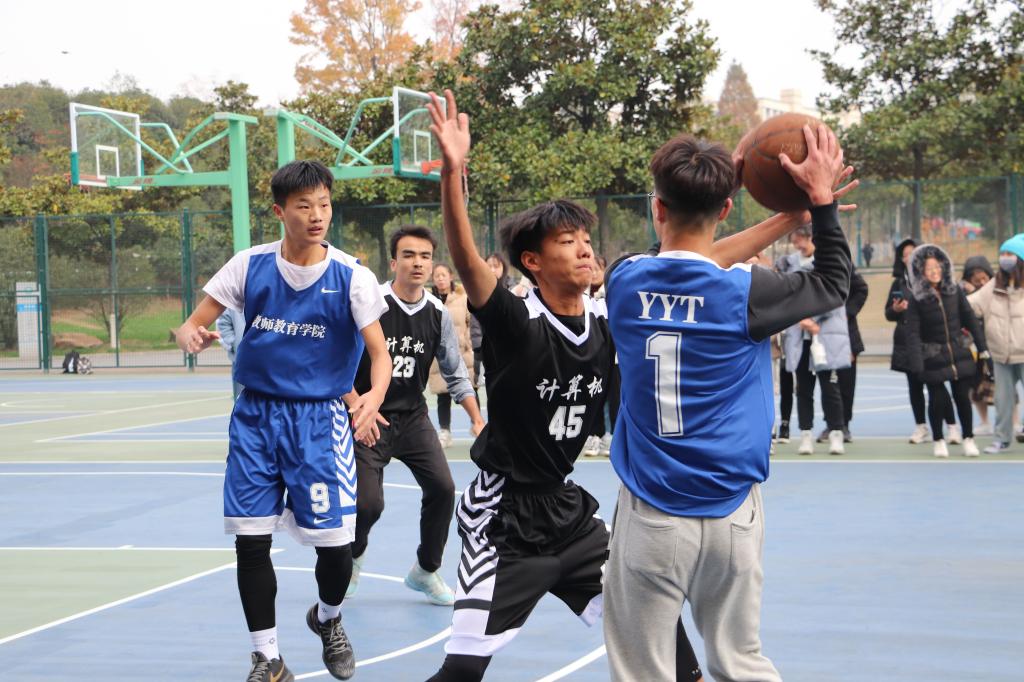 11月29日中午,信阳师范学院“雷速杯”篮球赛在西操场开赛,比赛由2026年国际足联世界杯男篮代表队对战计算机与信息技术学院男篮代表队。