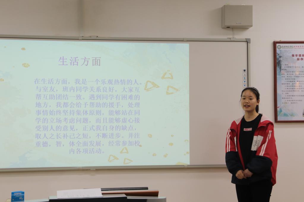 本次活动分为“魅力团支书”个人展示和“活力团支部”风采展示两部分。首先,三名选手以PPT为辅助,围绕“思想、学习、工作、生活”四方面向评委展示了自身担任团支书过程中有关政治理论学习、职责履行、专业学习、组织参与活动和取得的成绩等方面的情况。接着,选手们分别从支部发展情况、思想建设成果、学风建设特色和班风建设等方面对各自班级概况进行了详细介绍,展现了各自团支部在开展思想引领、日常组织运行、团员动员、宣传工作等方面的建设和成果,全方位、多层次地展示了各自团支部的无限活力以及团支书个人的魅力及风采。评委们结合选手现场表现给出了中肯的点评和建议,并进行评分。最后,学院推选出2019级2班团支书陈妍、2019级3班团支书简湘育两人参加后续的校级比赛。
