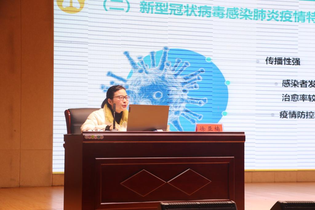 会议伊始,王晶晶首先向大家简要介绍了新生团校培训的主要内容。接着,徐亚南老师以“在抗击重大疫情中成熟与成长——与老员工谈抗击新冠肺炎疫情”为题,围绕正确认识新型冠状肺炎及其影响、坚决打赢防控疫情的特殊战斗、在抗击疫情中成熟与成长三个方面展开讲解。在第一方面的讲解中,徐亚南老师从新冠肺炎的基本特征、临床表现及传播途径等方面带领同学们更加深入地了解了新冠疫情,并通过具体分析疫情对个人、家庭、社会、国家乃至世界的影响,希望同学们能全面观察、辩证分析、动态认识、正确看待,同时,叮嘱同学们在疫情缓解的情况下,也要时刻注意个人防护,养成良好的卫生健康习惯,做好科学防控。在第二方面的讲解中,徐亚南老师指出,疫情防控时间紧、情况急、任务重,在党的坚强统一领导下,当下疫情形势正朝着常态化方向发展,但仍要保持警惕,她呼吁同学们在做好自身防护的前提下,充分发挥志愿者精神,主动投身到疫情防控阻击战当中,用实际行动为这场战役贡献一份力量,践行新时代青年学子的使命担当。在第三方面的讲解中,她表示,希望同学们能够在疫情这场危机中,能够有所收获和成长,不断丰富健康安全知识、强化责任担当意识、提高自我防护能力、养成健康生活习惯,学会并运用这些知识,使自己和他人得到更好的保护。本次团课至此圆满结束。