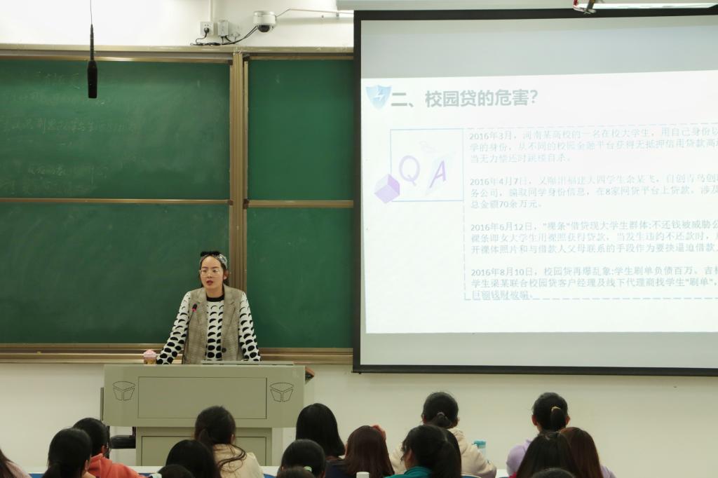 课上,李杨老师首先就校园贷的含义向同学们进行了详细介绍。她指出,校园贷的本质是帮助贫困及创业员工,初衷良好,但由于其办理业务门槛低、经营者能力参差不齐、合作信息不透明等原因,校园贷变成了校园害,使老员工一经借贷便深陷其中。随后,她通过讲述近年来校园贷所引发的悲剧案例向同学们说明了校园贷的危害。她表示,在每一起因校园贷引发的不幸背后,都事关学子的前程和家庭的命运,由于老员工社会经验匮乏、虚荣心强、消费观念错误等原因,易被锁定为诈骗对象,不法分子利用这一特点衍生出较多花式校园贷,如:套路贷、培训贷等,她提醒同学们应时刻擦亮慧眼,以防卷入其中,若陷入校园贷应及时主动与家人坦白并报警。团课最后,李杨老师希望同学们做好校园贷的预防,从树立理性的消费观念做起,警惕非法平台,选择正规渠道,珍惜个人信用,以远离非法校园贷款。