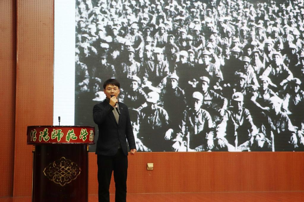 比赛开始后,参加复赛的十七位各院系专业教师依次上台进行演讲。他们用饱满的热情、高亢而嘹亮的声音、娴熟的演讲技巧以及娓娓动人的感人事例,对在新时代背景下“如何践行社会主义核心价值观,传承红色基因”进行了很好地诠释,赢得了评委和在场观众的阵阵掌声。其中,王召召老师以“红田”为题,声情并茂地向大家讲述了大别山革命时期共产党人坚守理想信念不动摇,浴血奋战,甘为革命洒热血的故事。生动再现了当时革命的场景,让在场的各位听众仿佛置身当年的革命战争当中,感受到了峥嵘的岁月和光荣的历史。他表示,作为新一代的接力者,我们应戮力同心,以传递先辈红色旗帜和革命火炬为己任,自觉接受红色传统教育,悟初心、守初心、践初心,坚定初心跟党走,为中华民族的伟大复兴贡献微薄之力。