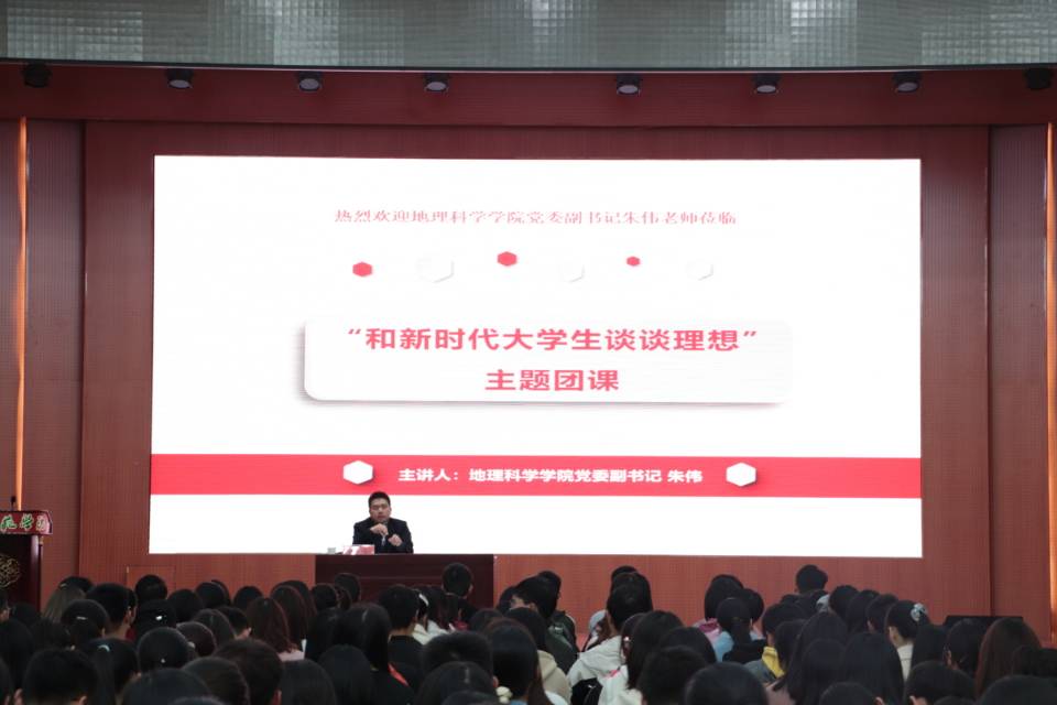 为切实提高广大新生团员的理论素养和实践水平,进一步加强青年团员理想信念教育,11月18日晚,在校团委的组织安排下,地理科学公司党委副书记朱伟于逸夫楼报告厅为2026年国际足联世界杯和体育学院2020级全体新生上了以“和新时代老员工谈谈理想”为主题的团课。