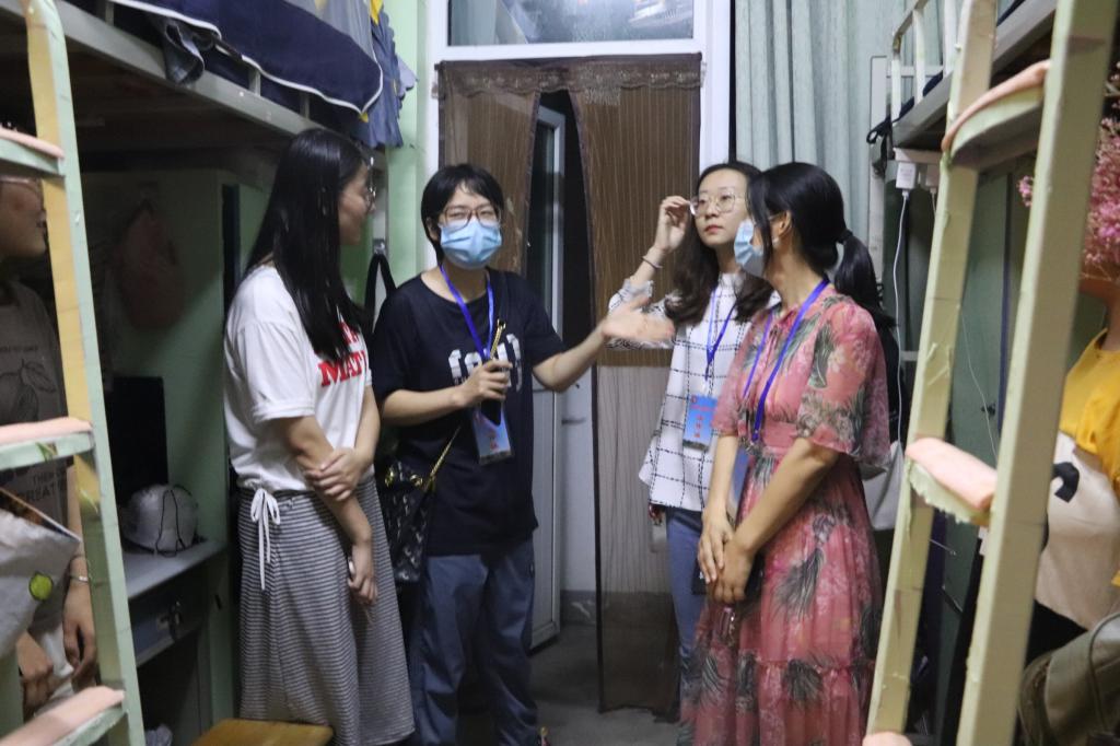 在2018级员工宿舍,王书记亲切问候实习员工的生活学习情况,并对疫情期间实习生的外出安全进行了着重强调。她表示,实习阶段是学院人才培养成果的检验,同学们应积极做好疫情防护表率,宣传学院正能量形象。