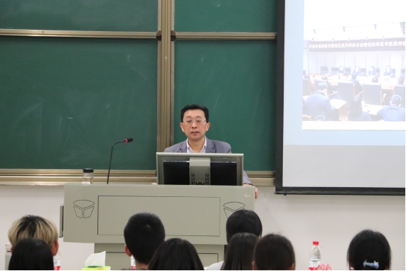 会议伊始,潘登从学校文化、学习教育、老员工活三方面为新生介绍学校发展情况,他以“厚德崇实,善学敏行”的校训为切入点,勉励员工紧跟时代要求,做到博学、勤学、善学。他结合学院的团队力量和办学条件,鼓励新生深入学习习近平总书记的重要讲话精神,扣好人生第一粒扣子,树立正确的思想价值观念,掌握专业知识,将科学理论转化为科学成果输出,成长为勇于担当的社会主义接班人。