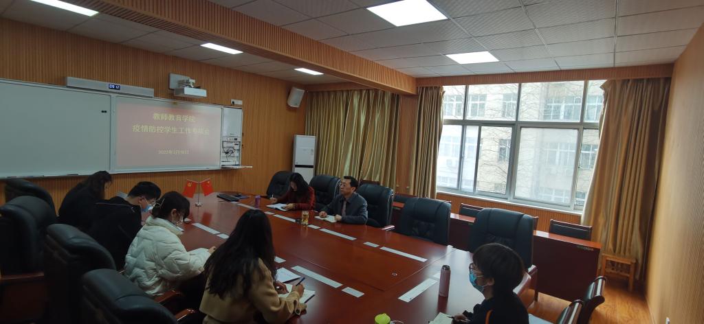 会议传达了信阳师范学院疫情防控文件精神,并对学院疫情防控进行了详细的部署安排,一是充分认识当前极端严峻的疫情防控形势,强化责任担当,确保校园不发生聚集性疫情,进一步加强日常管理和健康监测,坚持晨午晚检和因病缺课登记追踪制度,确保师生安全;二是加强个人防护意识,配戴好口罩,做好个人防护措施;三是完善报备制度,如有外出及时报备,降低风险;四是强化舆论导向,减少师生因封校产生的负面情绪。